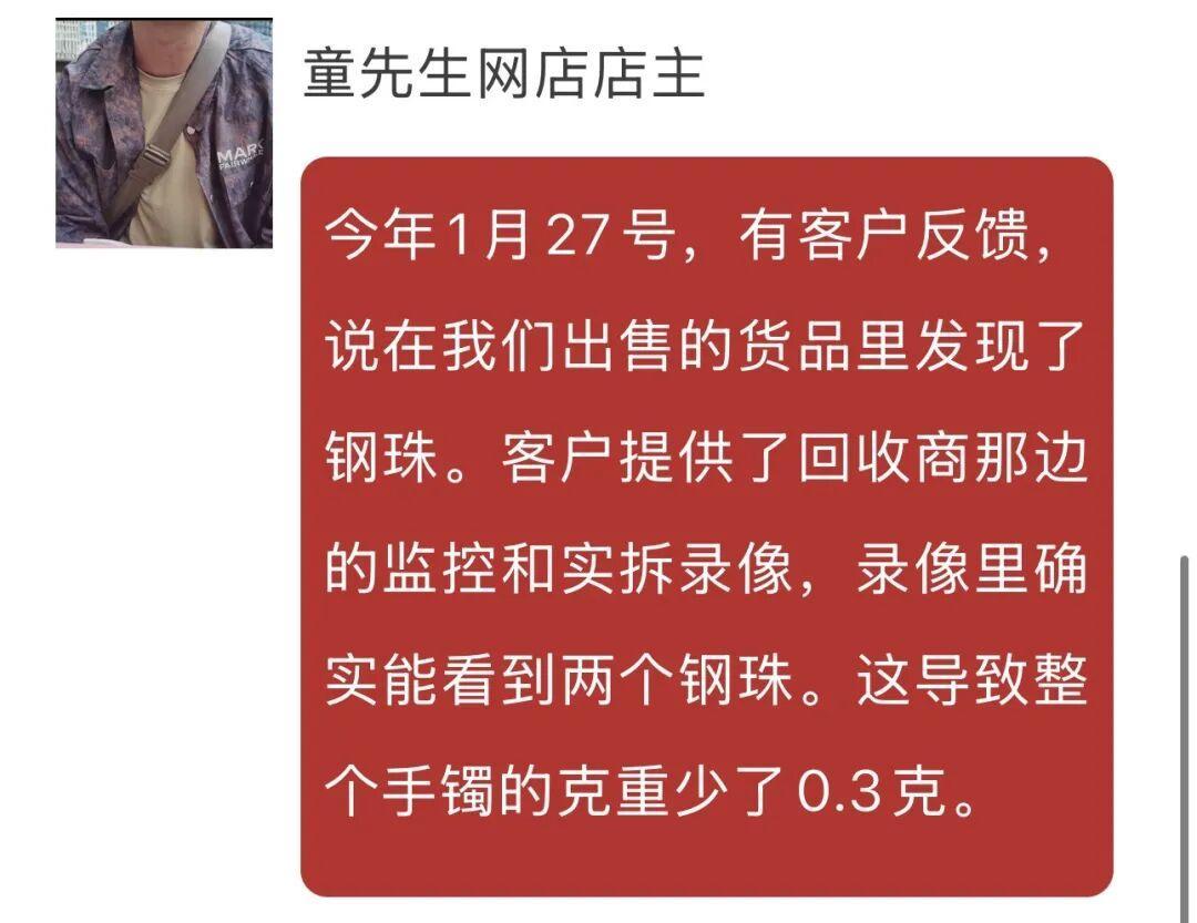 这段时间,在深圳经营网店的童先生遇到了一件烦心事。一位外地顾客突然告知,从网店购买的黄金手镯里,发现了不属于它的东西。而这一发现,迫使他急忙召回已售出的黄金手镯,这到底是怎么回事?